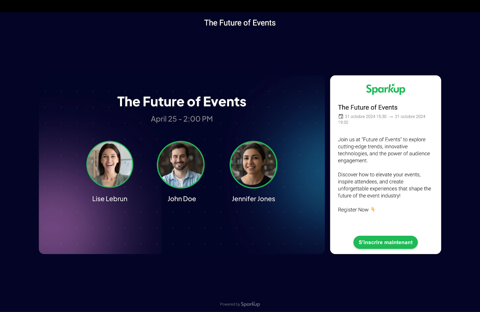 Créer une page d’inscription personnalisée avec Sparkup est un excellent moyen d'engager votre audience et de collecter des informations précieuses sur vos participants. Grâce à ses nombreuses options de personnalisation et ses outils d’automatisation, Sparkup facilite la gestion des inscriptions tout en garantissant une expérience professionnelle pour vos événements.