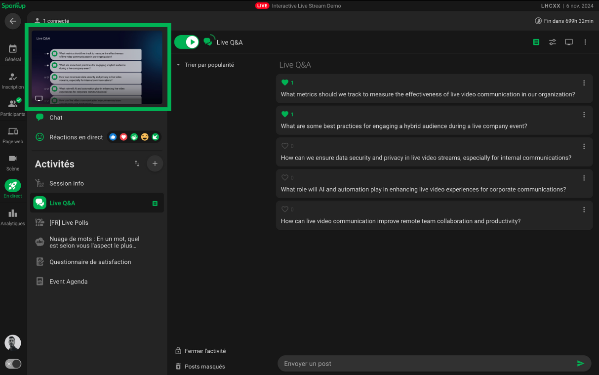 Activer le mur de Questions pour vos participants :