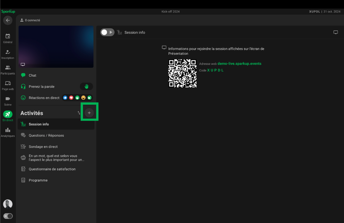 - Dans votre session, cliquez sur l’onglet “En direct”.